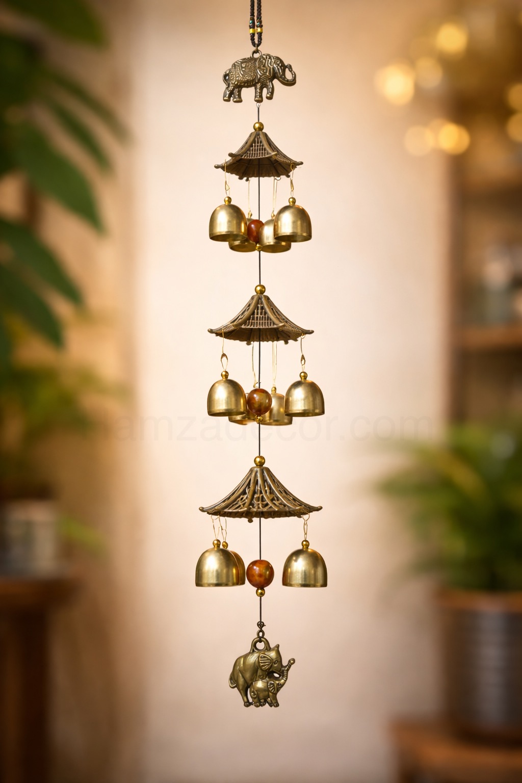 Imported metal elephant doorbell with 3 layers and 9 bells — perfect for elegant home décor and beautiful entrance vibes.