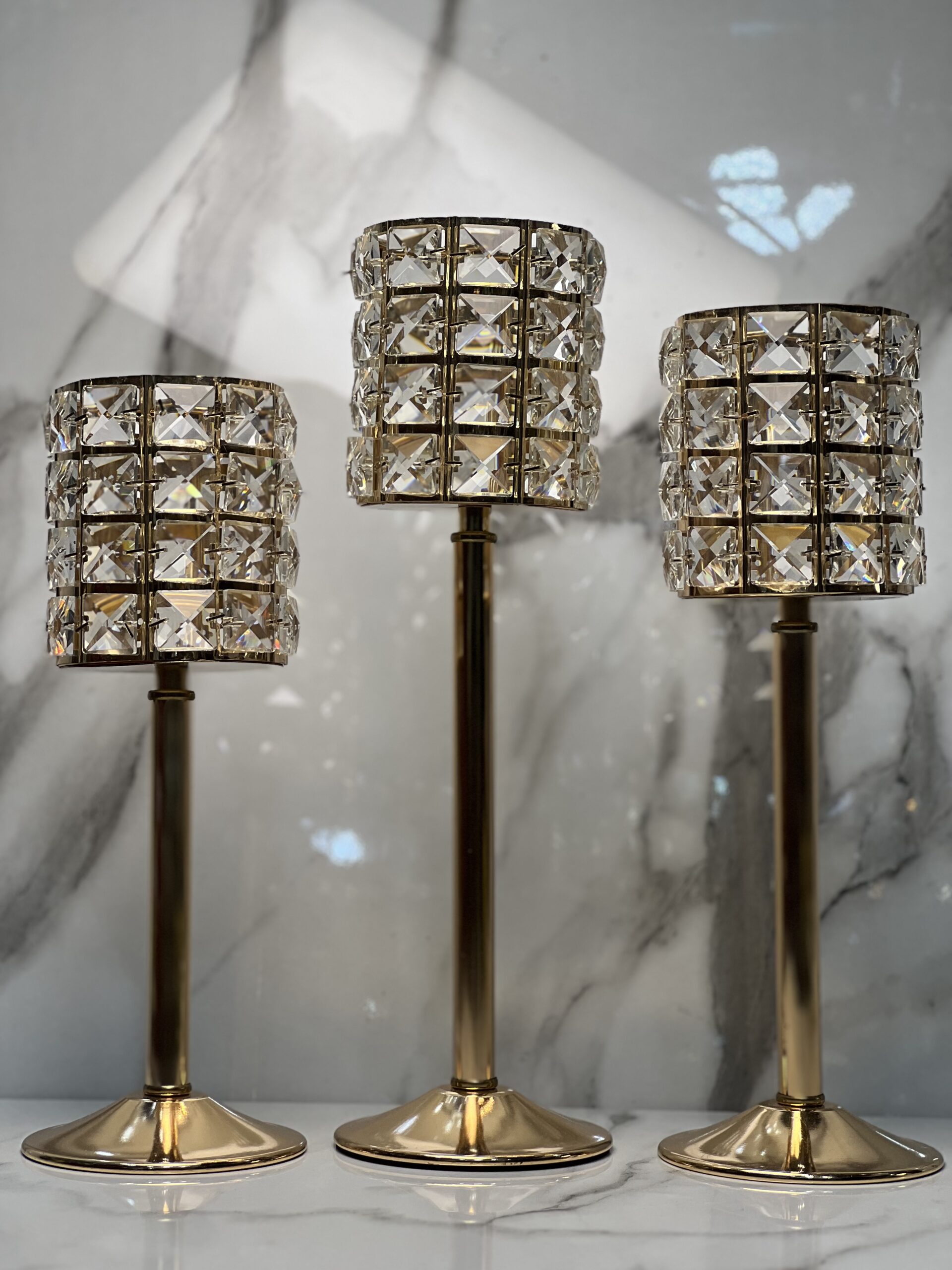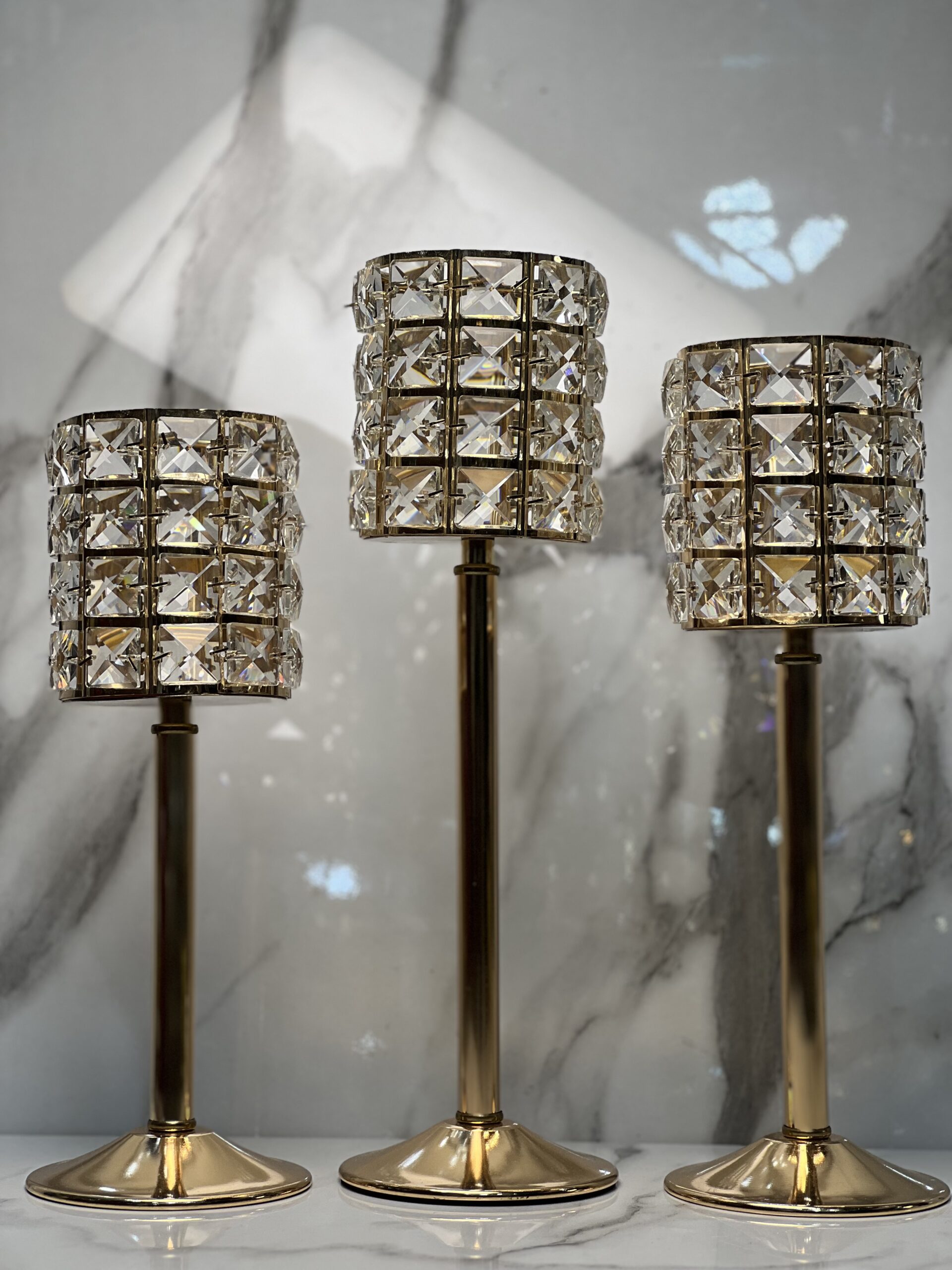 Luxury Crystal & Metal Candle Stand Set (3-in-1)
