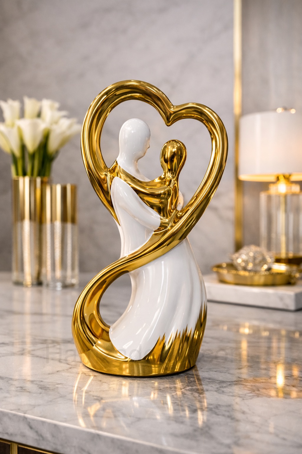 Bring timeless elegance and emotional beauty into your home with the Eternal Embrace Luxury Imported Ceramic Decor Sculpture. This exquisite piece is masterfully crafted from high-quality ceramic and finished with a radiant powdered gloss that highlights its smooth curves and striking gold accents. The artistic design represents love, unity, and warmth, making it a perfect statement piece for living rooms, bedrooms, console tables, or luxury shelves.