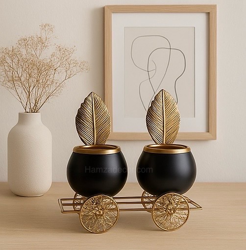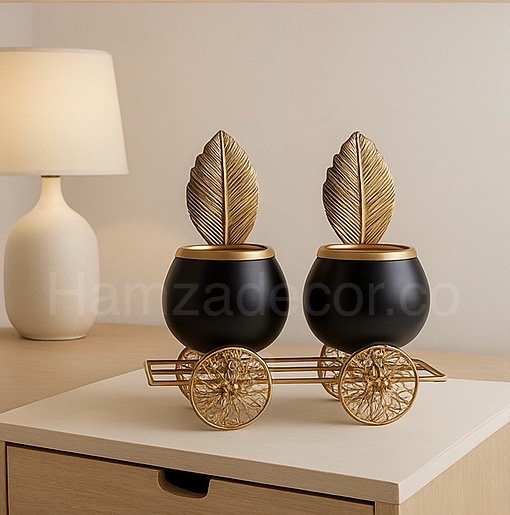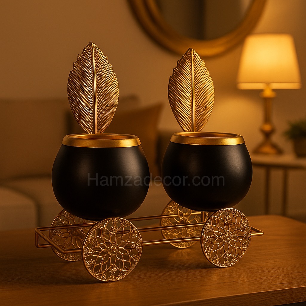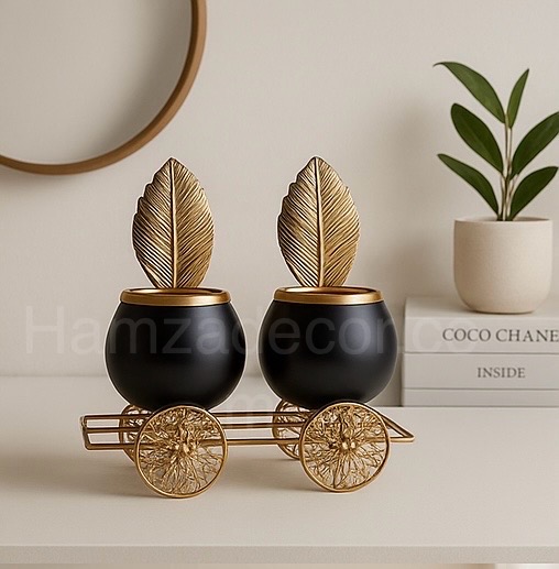 The unique gold feather design at the top and the intricate decorative wheels give it a modern royal look, making it a perfect décor piece for any space.