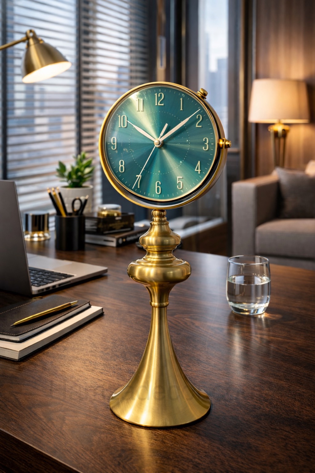 A luxurious imported metal desk clock featuring a sleek modern design, premium finishing, and a unique moveable dial ring. Perfect for offices, consoles, study tables, and luxury interiors.