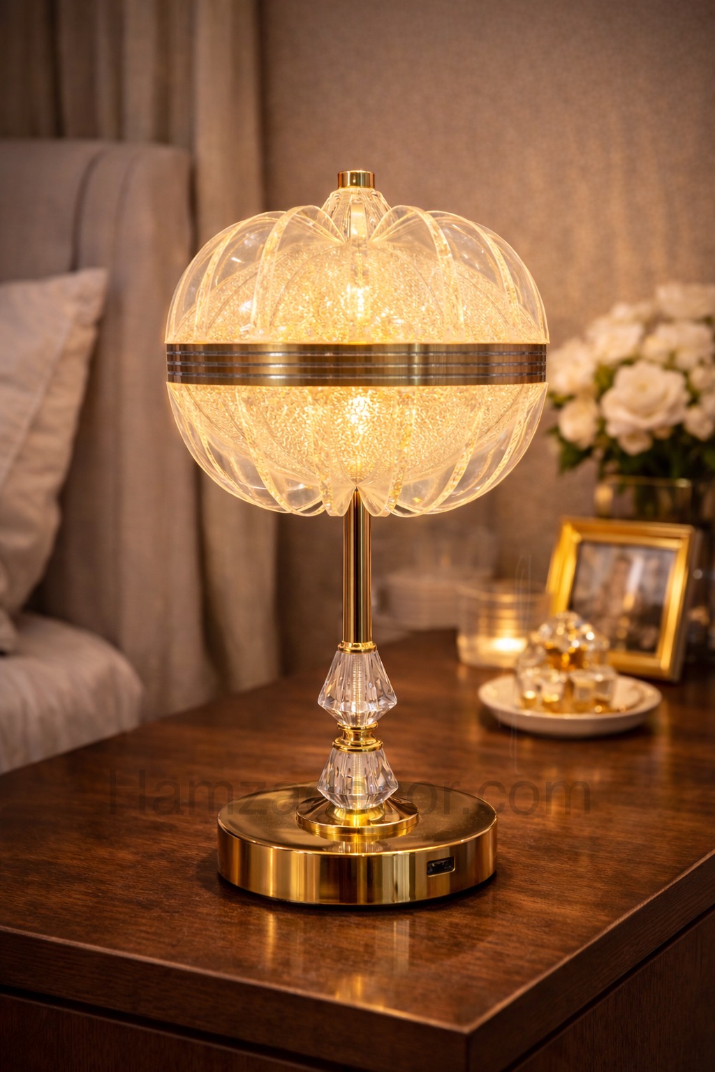 This premium crystal lamp is designed to add elegance and modern luxury to any space. Crafted with a beautifully detailed crystal-style shade and a sleek metallic base, it creates a stunning visual effect while providing soft, ambient lighting.