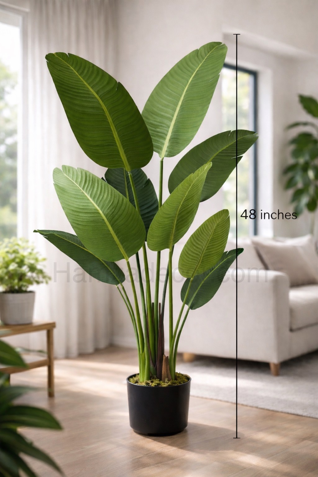 The plant comes in a stylish black pot, making it easy to place on the floor, beside a sofa, in a corner, or near windows to enhance the beauty of your space. Its 48-inch height gives it a bold presence while still being easy to fit into modern homes and commercial settings.