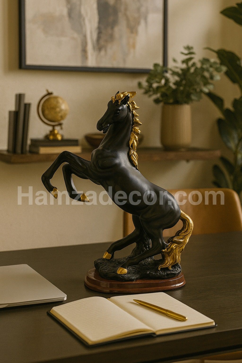 Add elegance and power to your space with this Premium Black & Gold Horse Statue, designed to bring sophistication to any setting. Made with high-quality materials, this 9-inch decorative piece is perfect for office desks, living rooms, study tables, or reception areas.