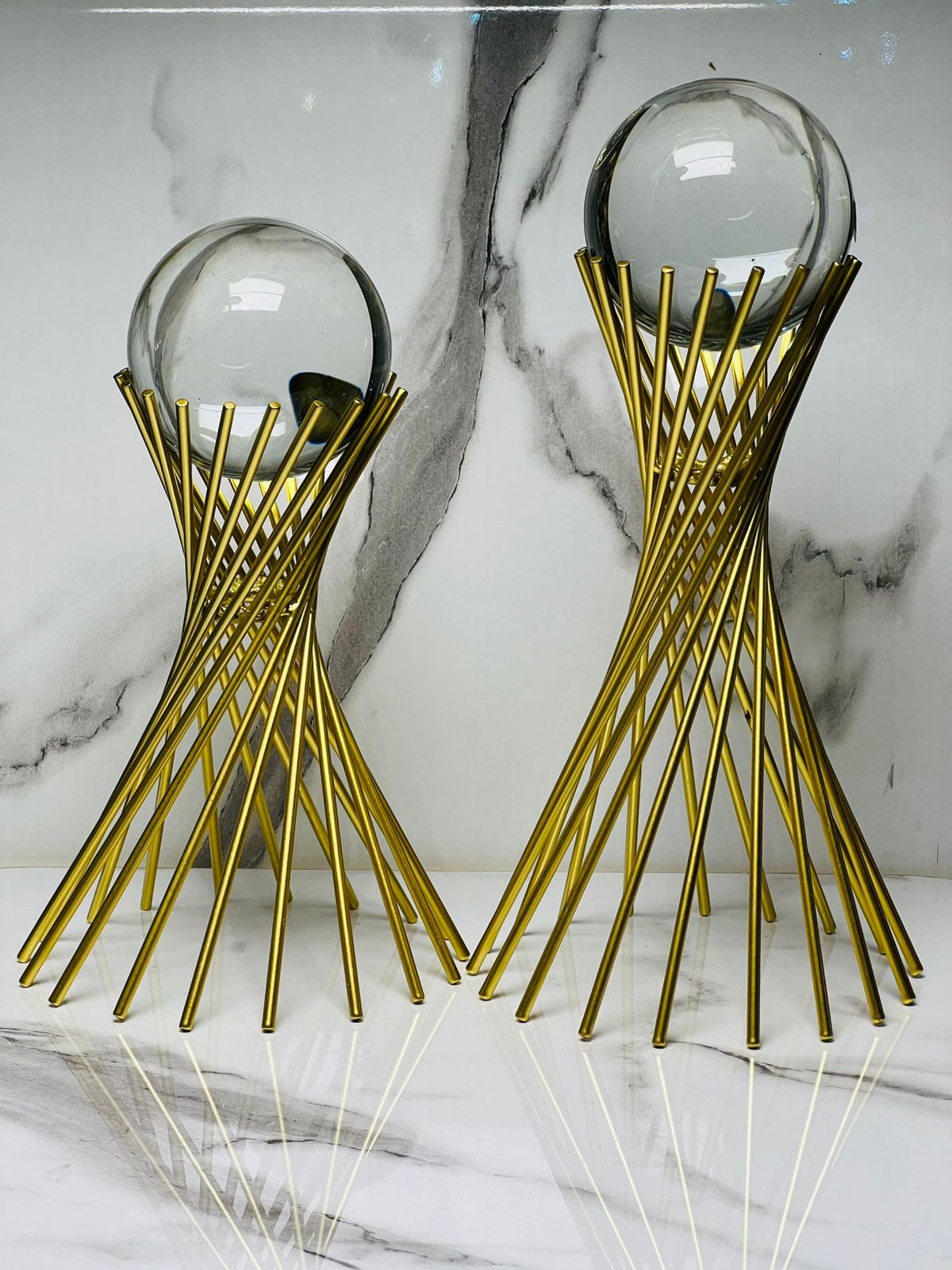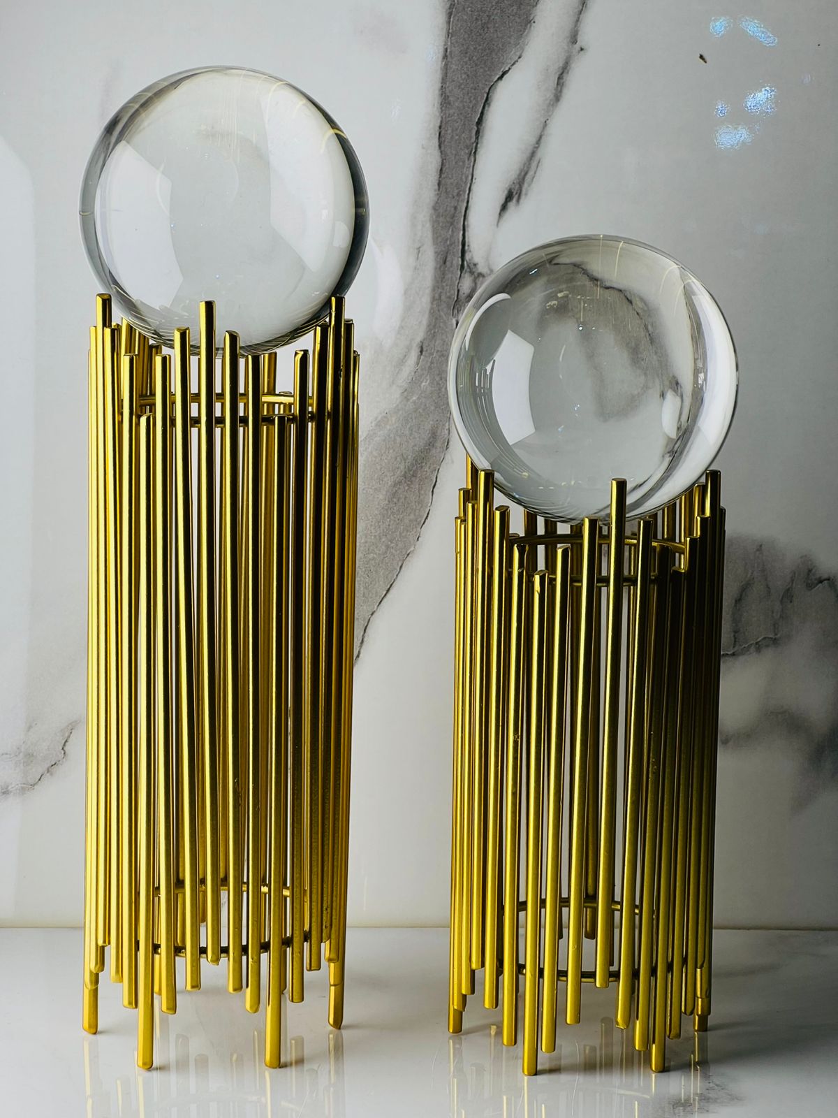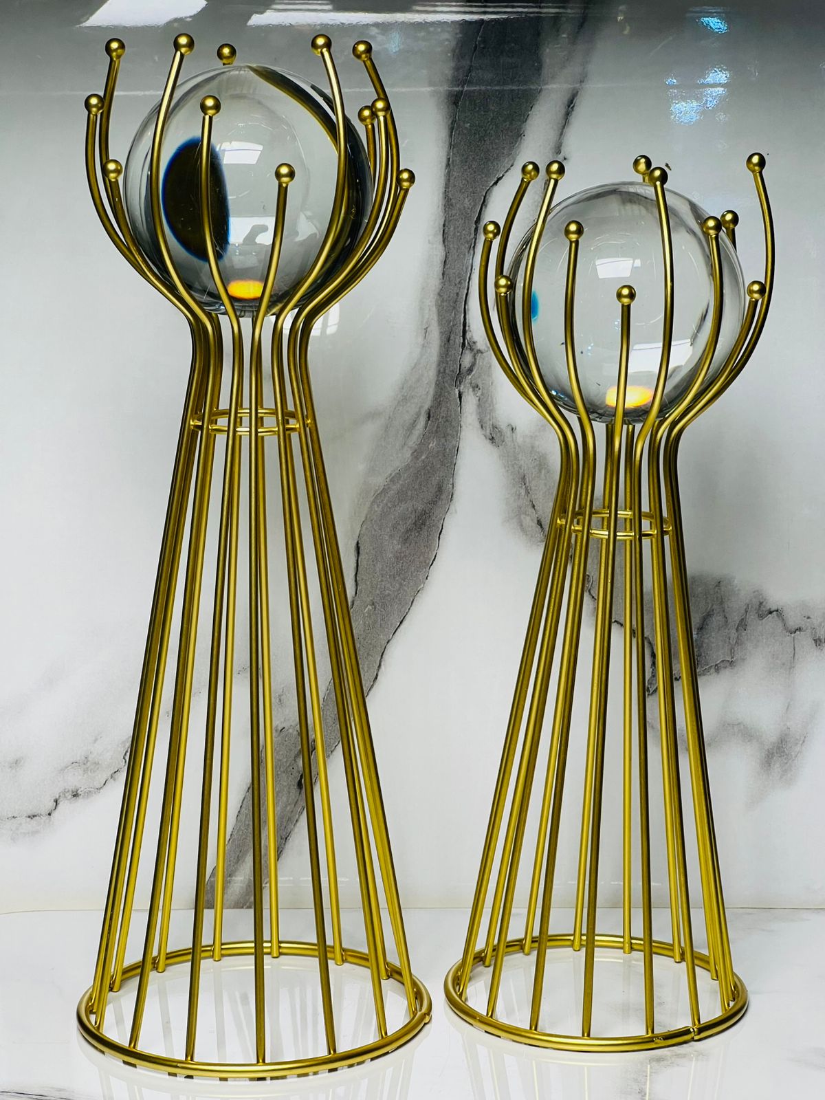 The metal stands are made from fine imported material with an anti-rust, non-blackable coating, ensuring long-lasting shine and durability. The premium quality crystal spheres create a captivating reflective glow, making this décor piece a true statement of class.