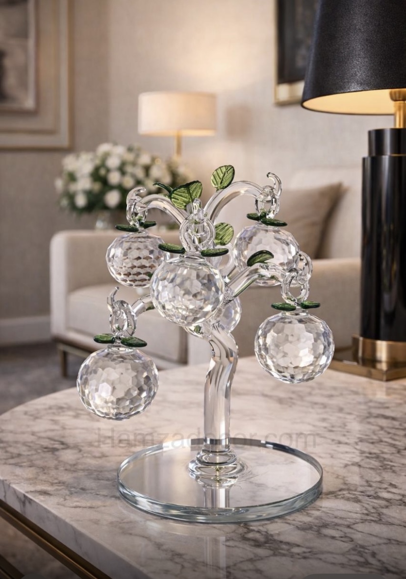 Add a touch of timeless elegance to your interior with this luxury imported crystal decorative tree showpiece. Expertly crafted from high-quality crystal material, this exquisite décor piece features beautifully faceted crystal fruits and delicately designed crystal branches that reflect light with a brilliant sparkle.