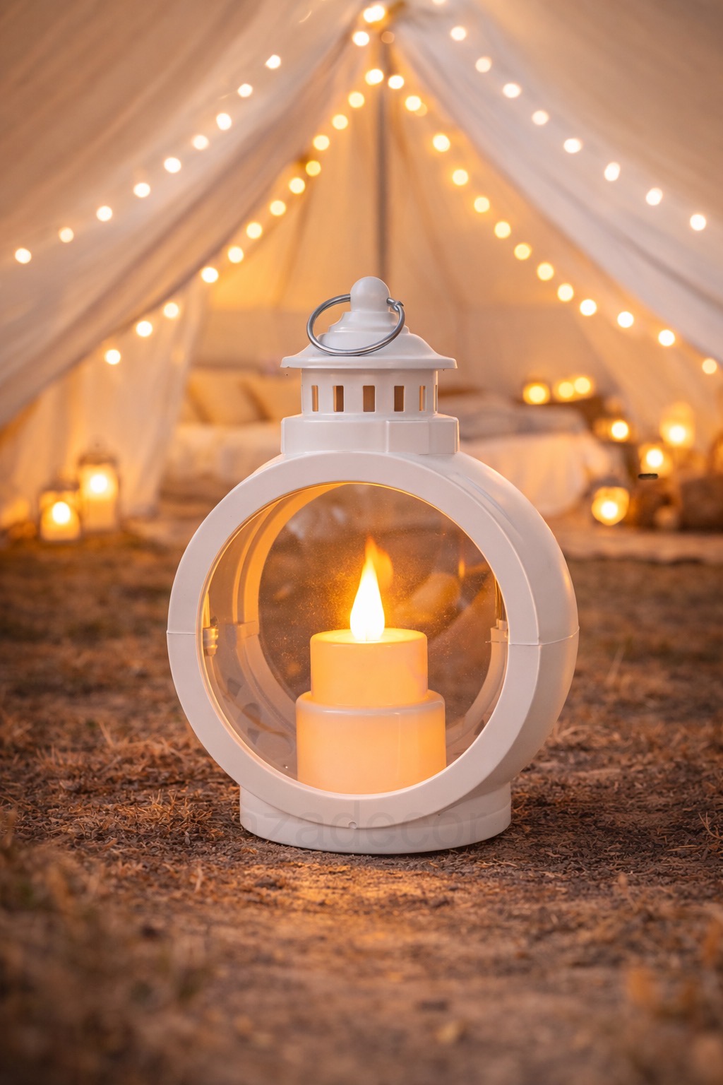 Create a cozy and magical vibe anywhere with this round LED lantern featuring a beautiful warm candle-style light. Its elegant design and soft glow make it perfect for both home décor and outdoor/camping setups. The lantern gives a realistic flame effect while staying completely safe—no smoke, no wax, no heat.